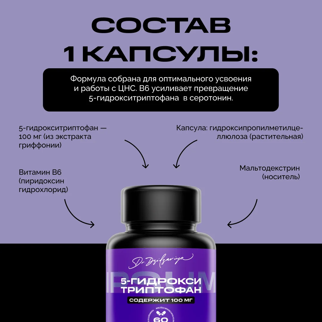 5-гидрокситриптофан - способствует поддержке эмоционального баланса, улучшает сон, помогает регулировать аппетит