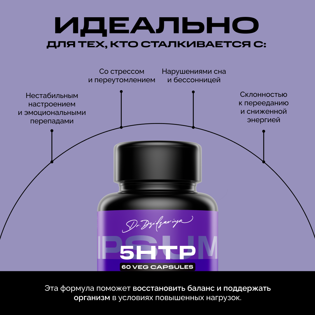 5HTP - способствует поддержке эмоционального баланса, улучшает сон, помогает регулировать аппетит