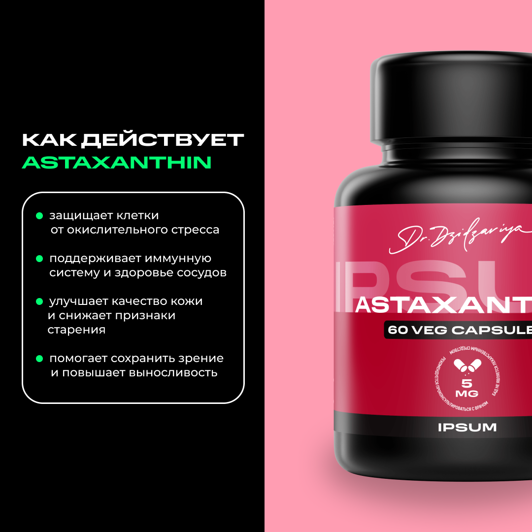 Астаксантин мощный антиоксидант, помогает в защите клеток от окислительного стресса, Благоприятно влияет на зрение, кожу и иммунитет.