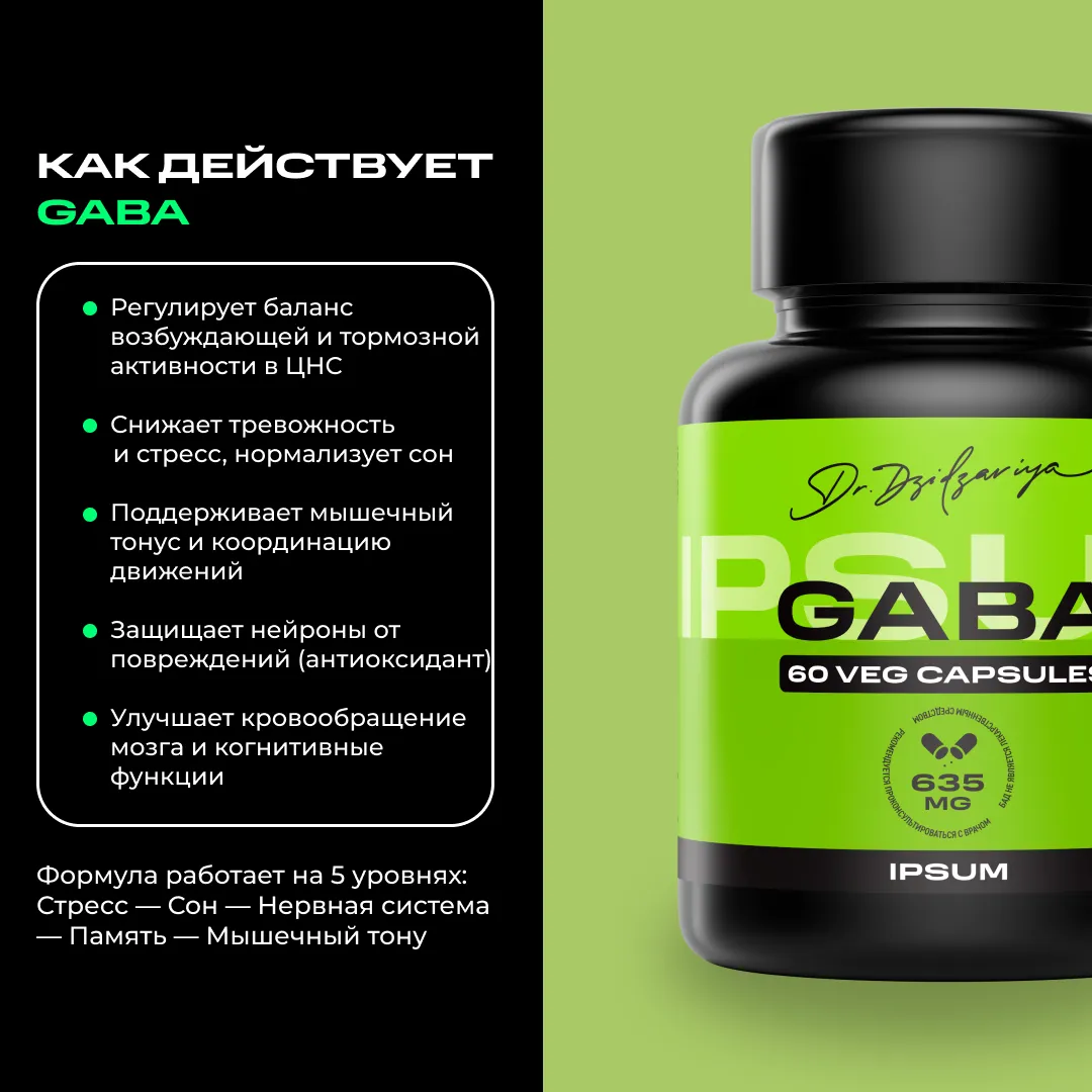 ГАБА - важный нейромедиатор, отвечающий за регуляцию нервной системы и мышечного тонуса, противостоянию стрессу, нормализацию настроения и сна