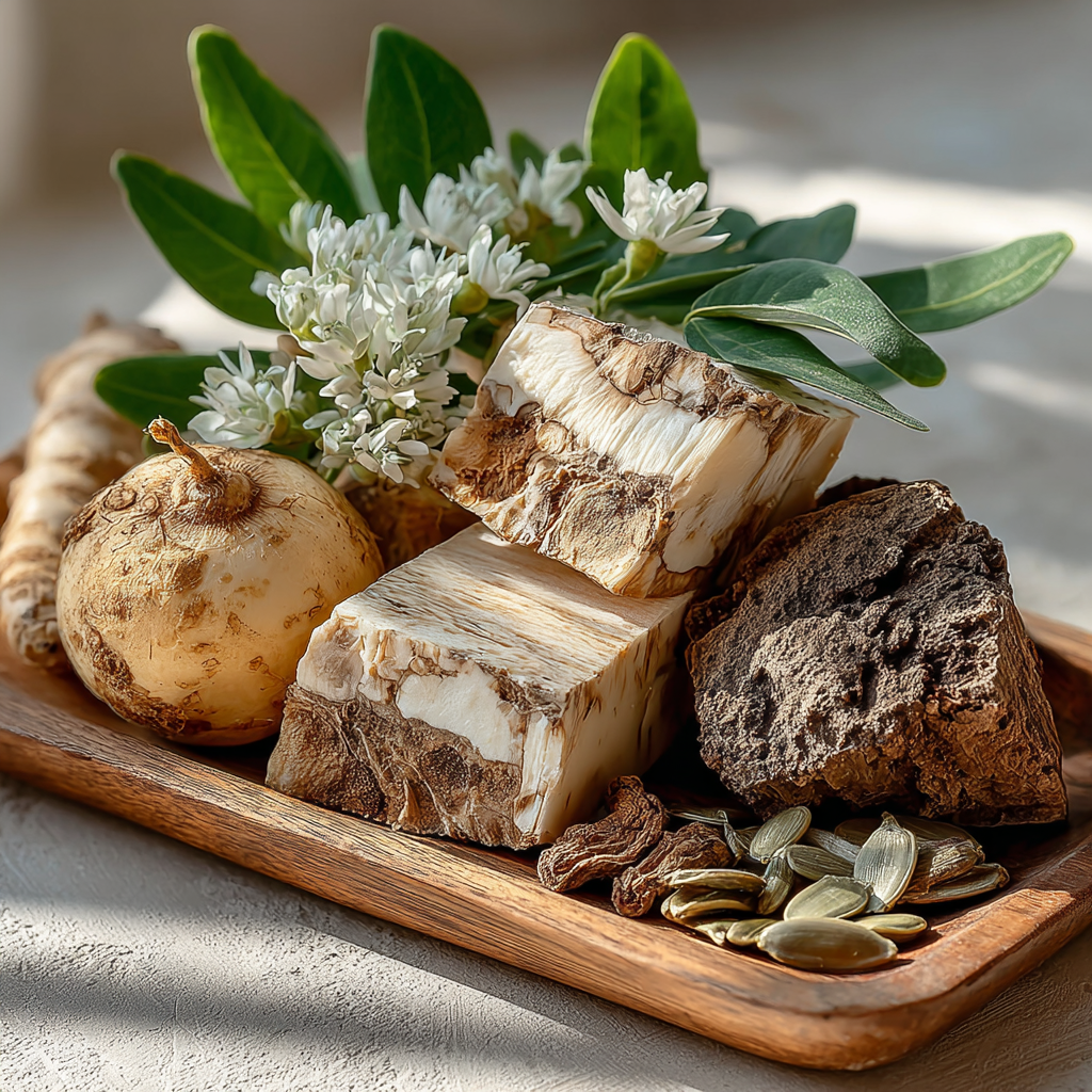 Мака перуанская (Lepidium meyenii)Благоприятно влияет на фертильность и либидо. Помогает восстанавливаться после физических и эмоциональных нагрузок.