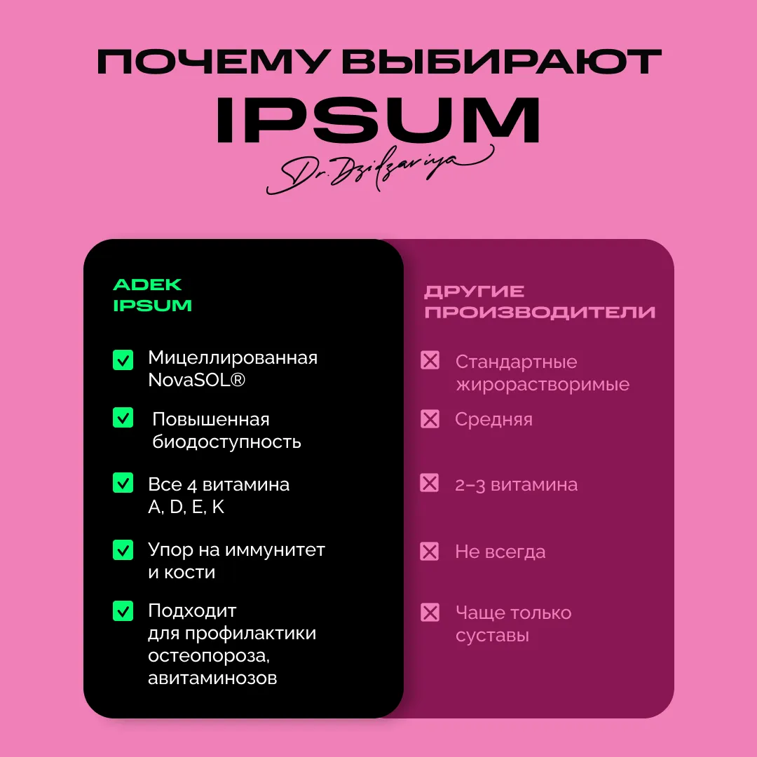 Не превышайте дозировку: ADEK накапливаются в организме, поэтому эффект достигается стабильностью, а не количеством.