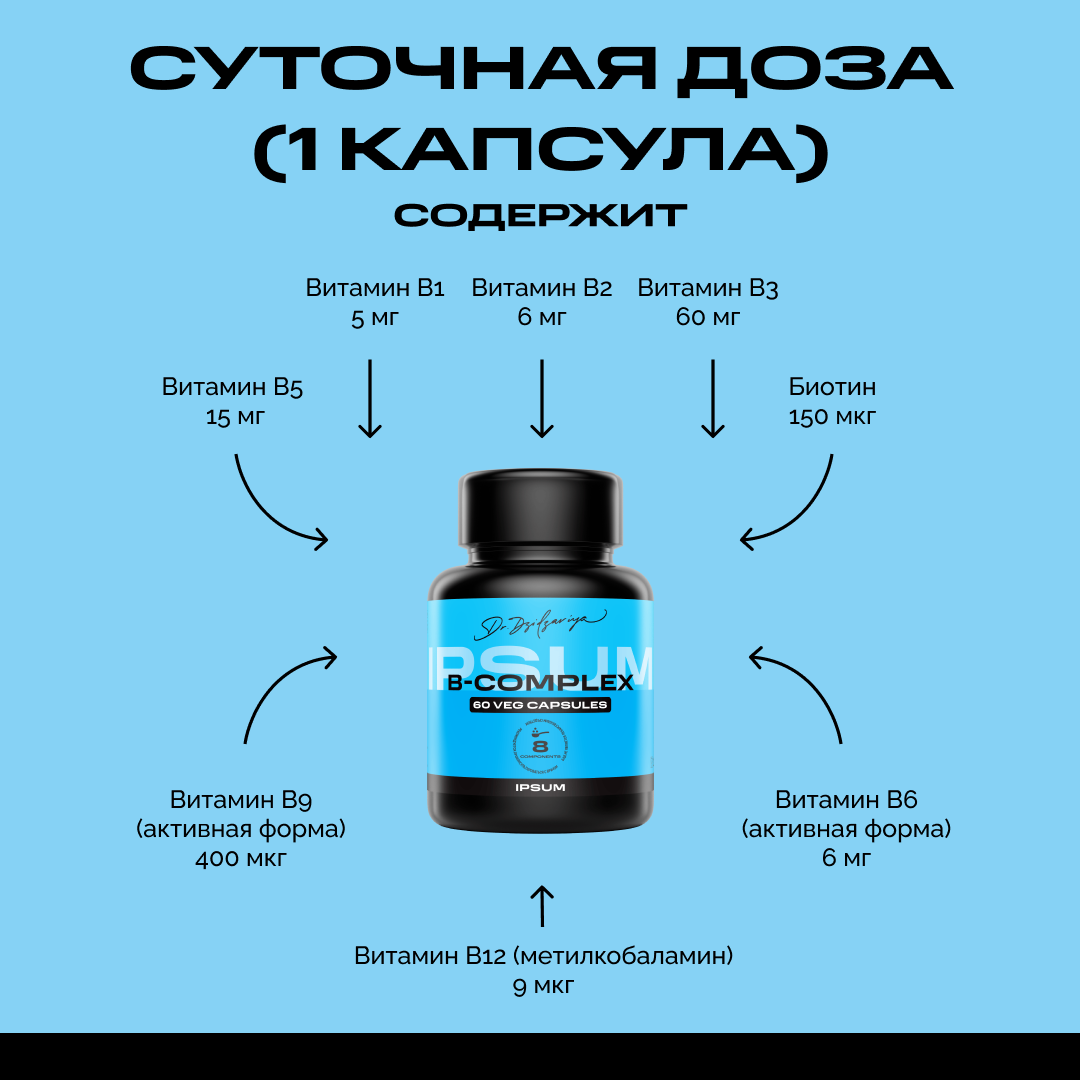 Витамины группы B водорастворимы, поэтому важно принимать их вместе с полноценным приёмом пищи. Так они быстрее переходят в «энергетический режим» и работают без нагрузки на желудок.