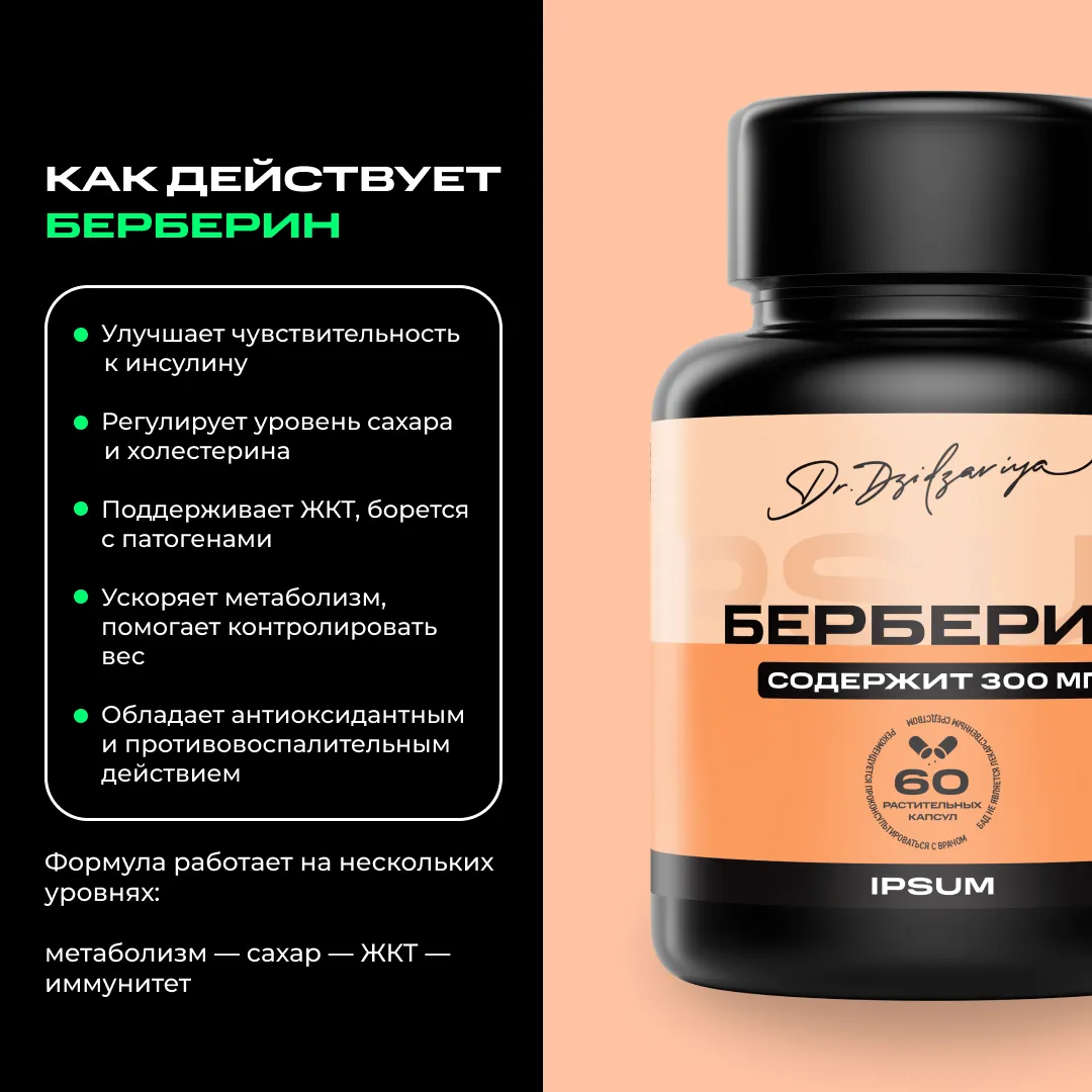 Комбинируйте приём с полноценным, сбалансированным обедом или ужином — белки, полезные жиры и клетчатка помогут берберину проявить максимум своих метаболических суперспособностей.