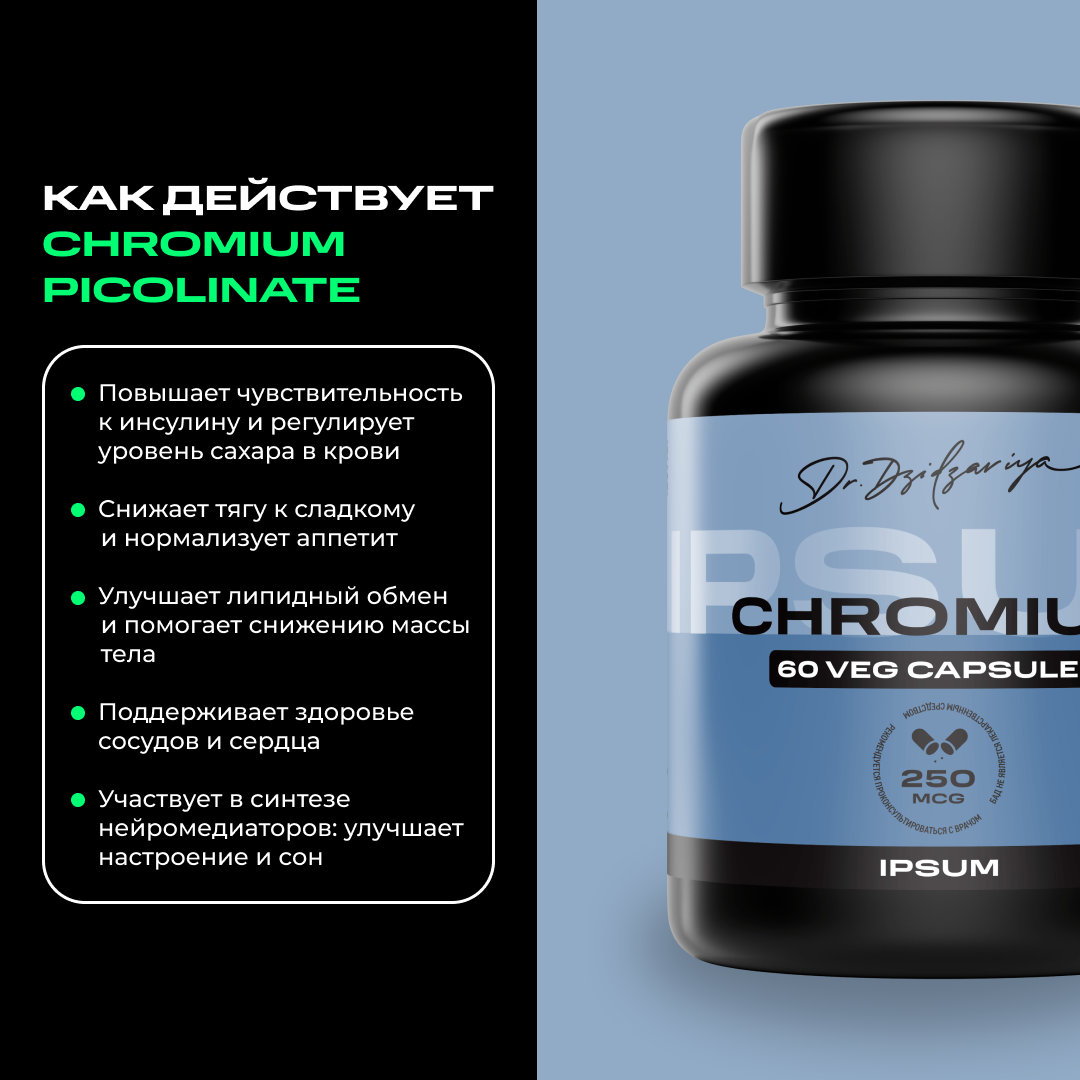 Аппетит под контролем, энергия — без скачков, настроение — ровное и стабильное. Хром пиколинат создан для тех, кто устал жить на «сахарных горках» и хочет вернуть себе ощущение контроля над питанием и своим телом без стресса и крайностей.