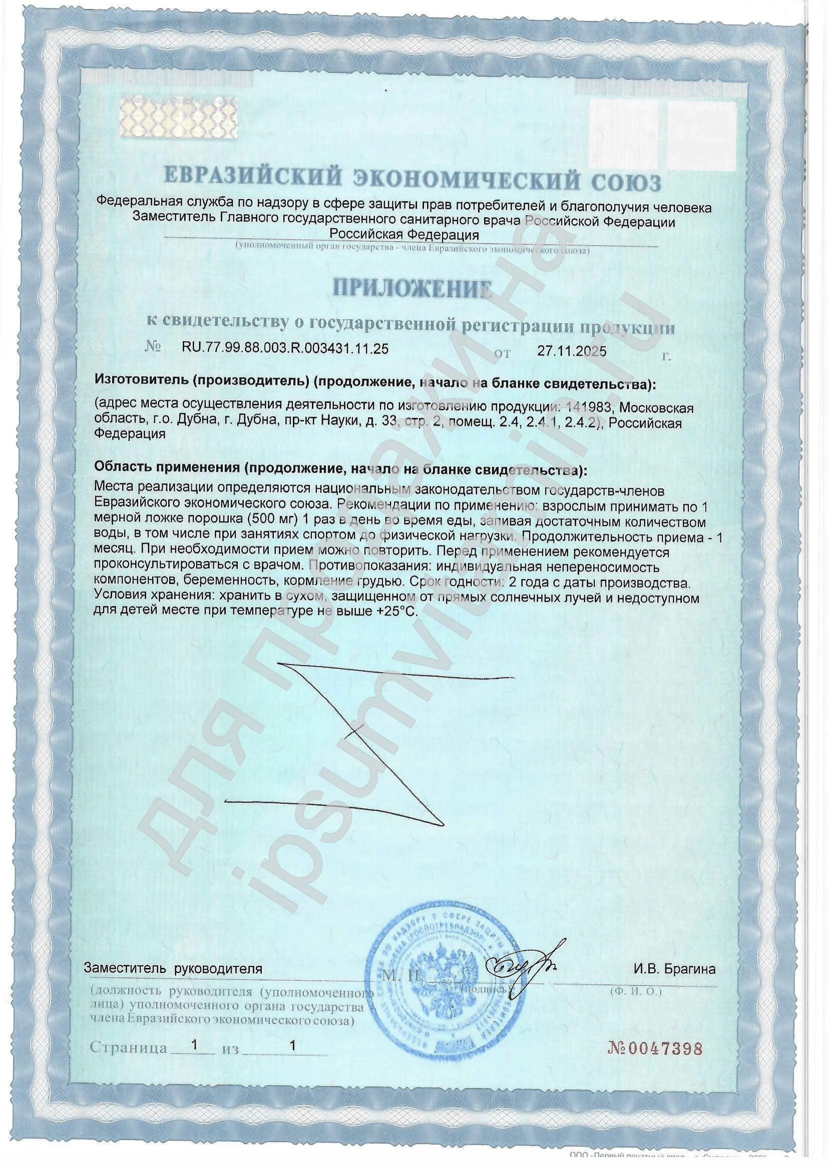 Дозировка и способ: растворите 500 мг (1 мерную ложку) в 200–250 мл воды, хорошо размешайте до однородности. Принимайте 1 раз в день.