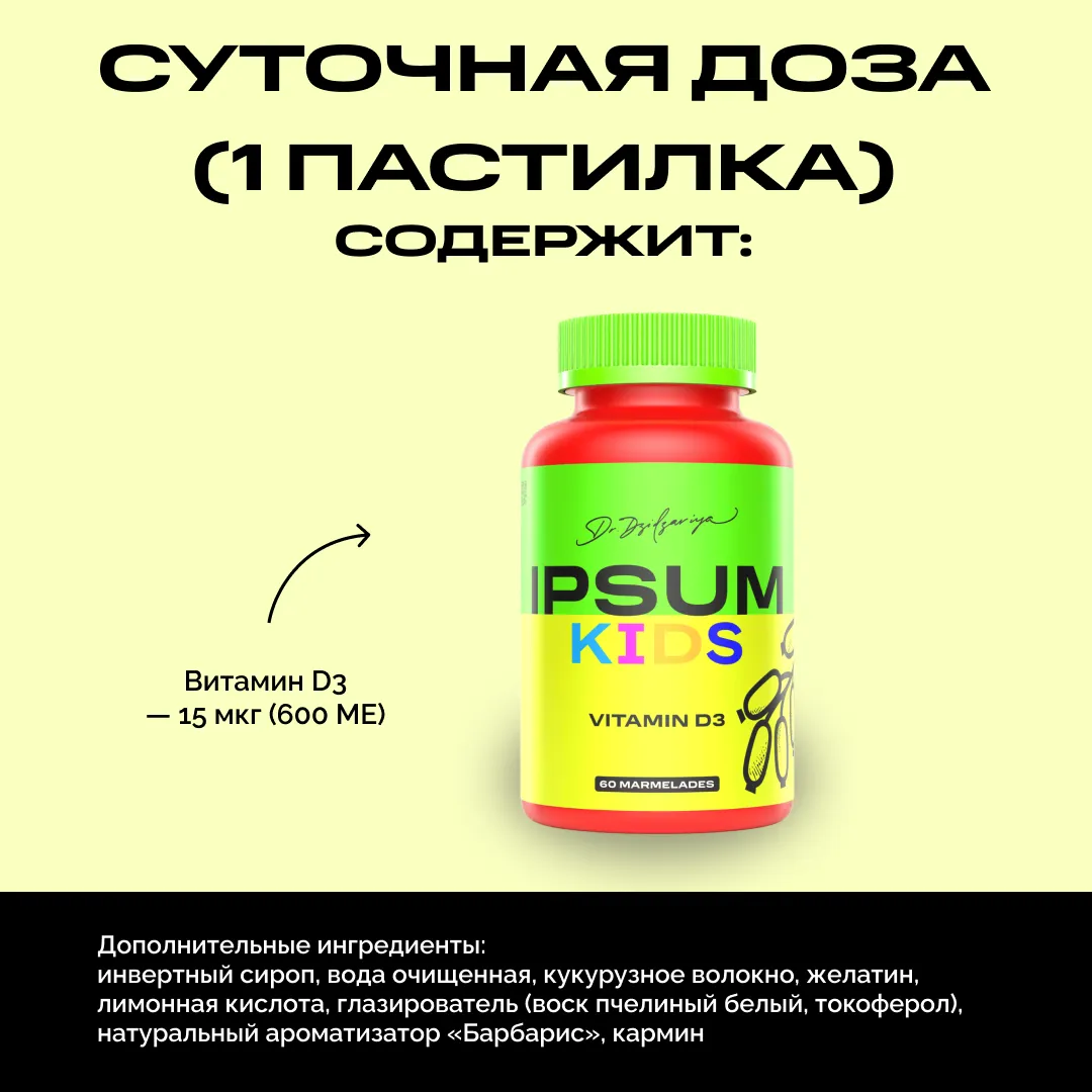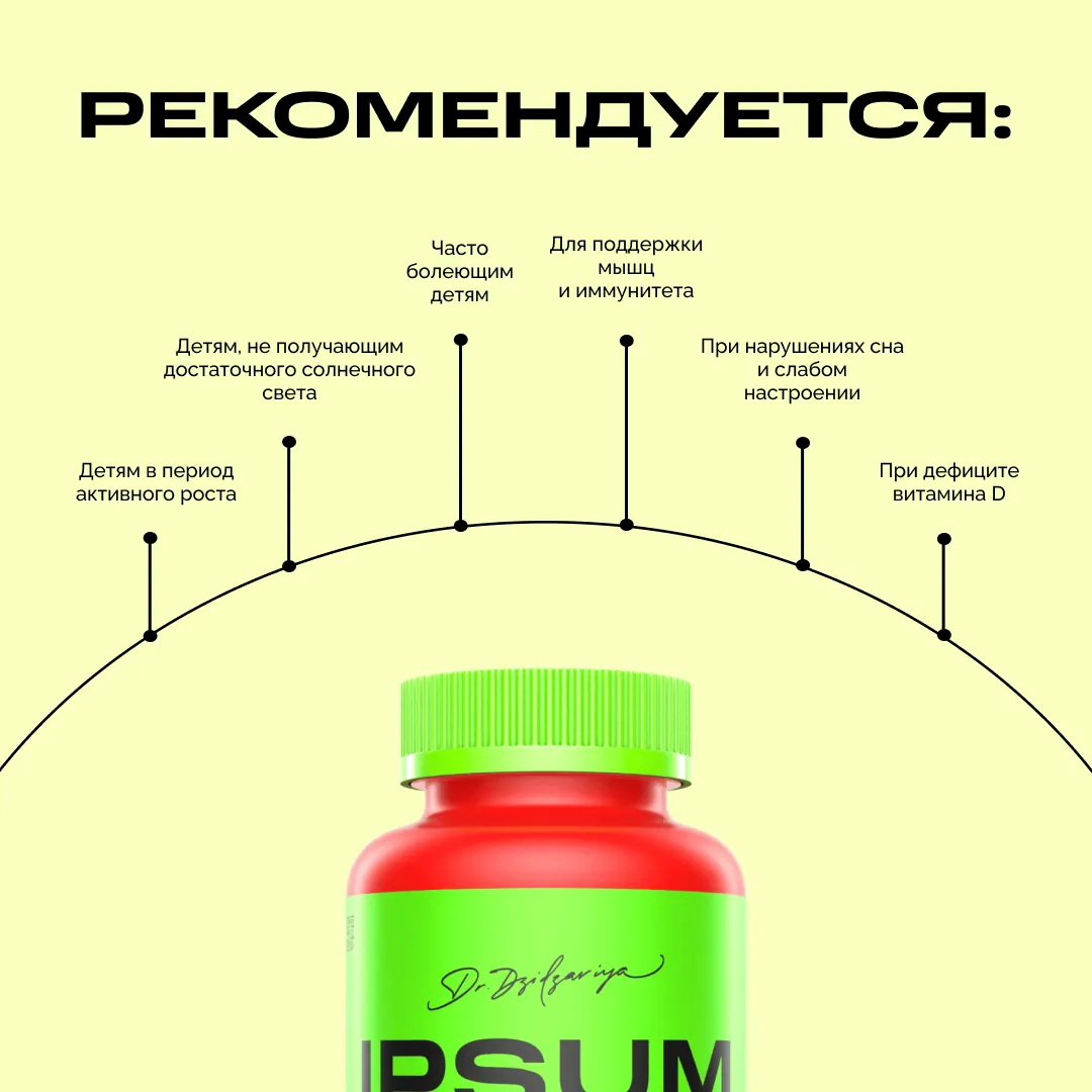 Витамин D — маленький, но крайне важный супергерой в питании ребёнка. Он отвечает за крепкие кости, здоровые зубы, сильный иммунитет и даже хорошее настроение. D3 KIDS IPSUM создан, чтобы дать растущему организму поддержку, когда солнечных лучей мало или рацион не всегда идеален.