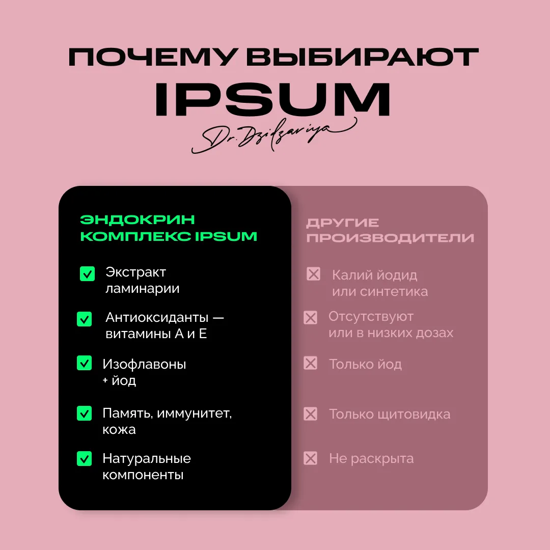 Щитовидная железа — маленький орган с огромным влиянием. Она управляет энергией, настроением, обменом веществ и даже качеством сна. Эндокрин комплекс IPSUM создан, чтобы мягко поддерживать её работу, помогать гормональному балансу и сохранять жизненную силу на высоком уровне каждый день.