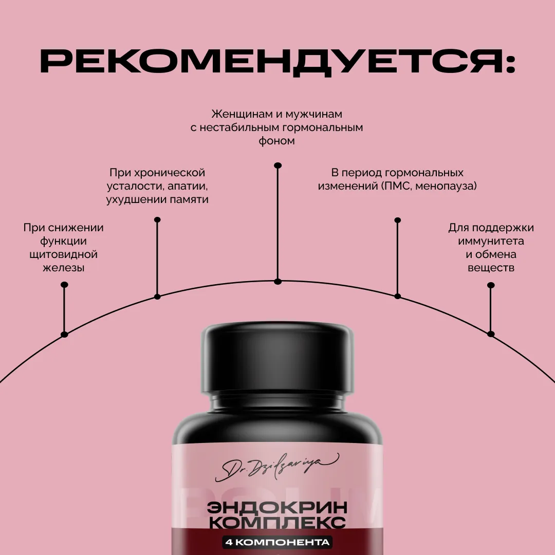 Эндокринный комплекс помогает поддерживать здоровье щитовидной железы и гормональный баланс, участвует в регулировании обмена веществ и уровни энергии, помогает улучшить память и внимание, помогает в защите клеток от окислительного стресса, а также благоприятно влияет на укрепление иммунной системы и кровообращения