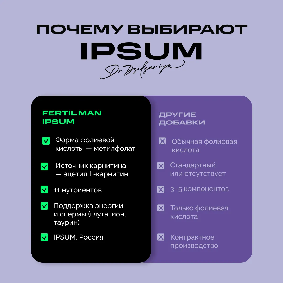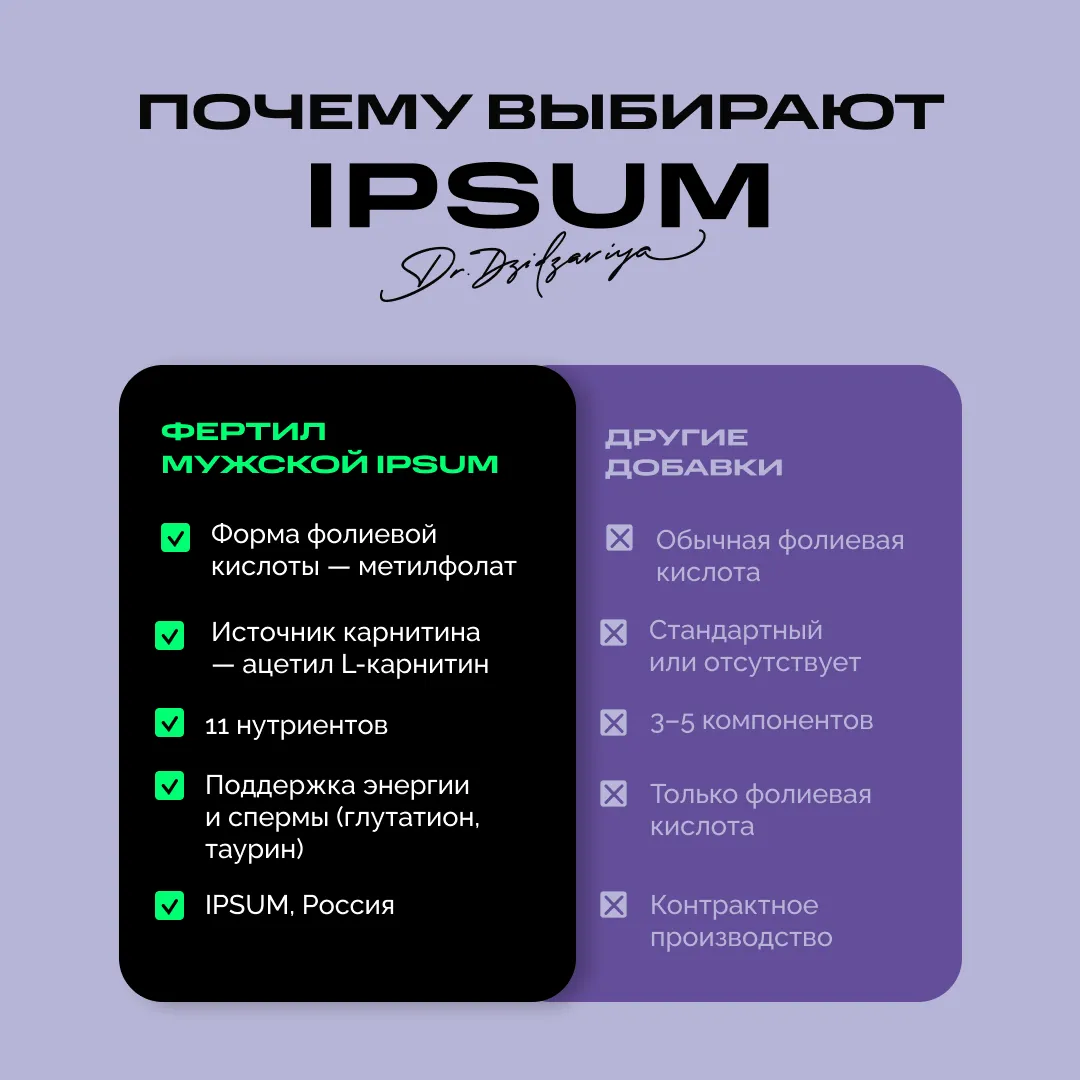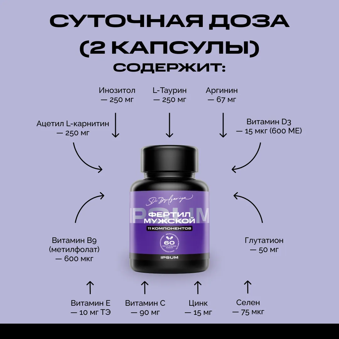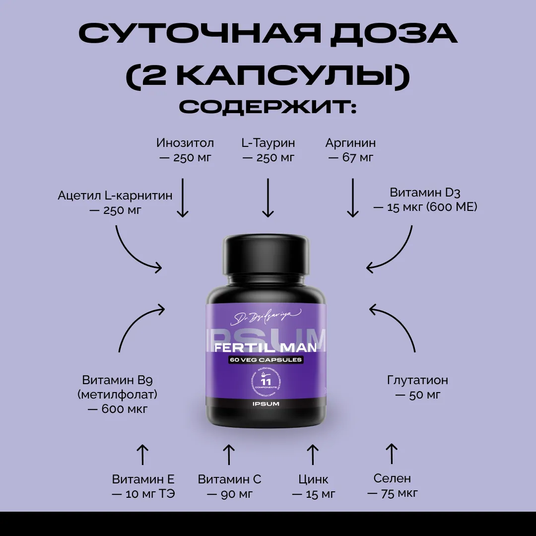 Сильное мужское здоровье — это не просто про силу, это про стабильность, уверенность и внутренний ресурс. Фертил мужской IPSUM положительно влияет на репродуктивную функцию, гормональный баланс и общее самочувствие на уровне премиального ухода за собой.