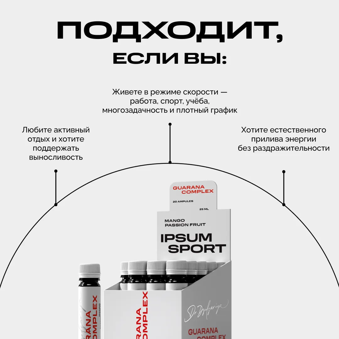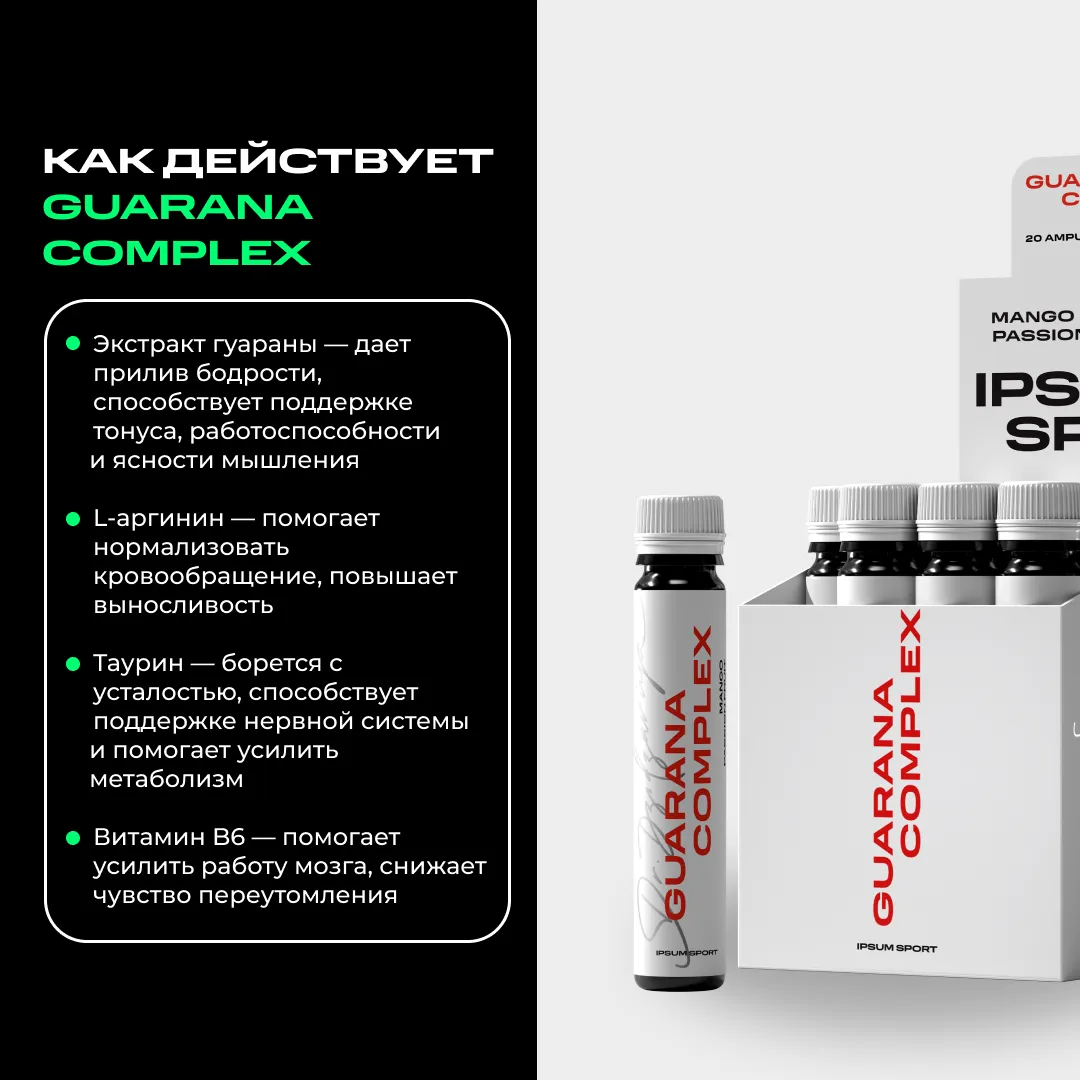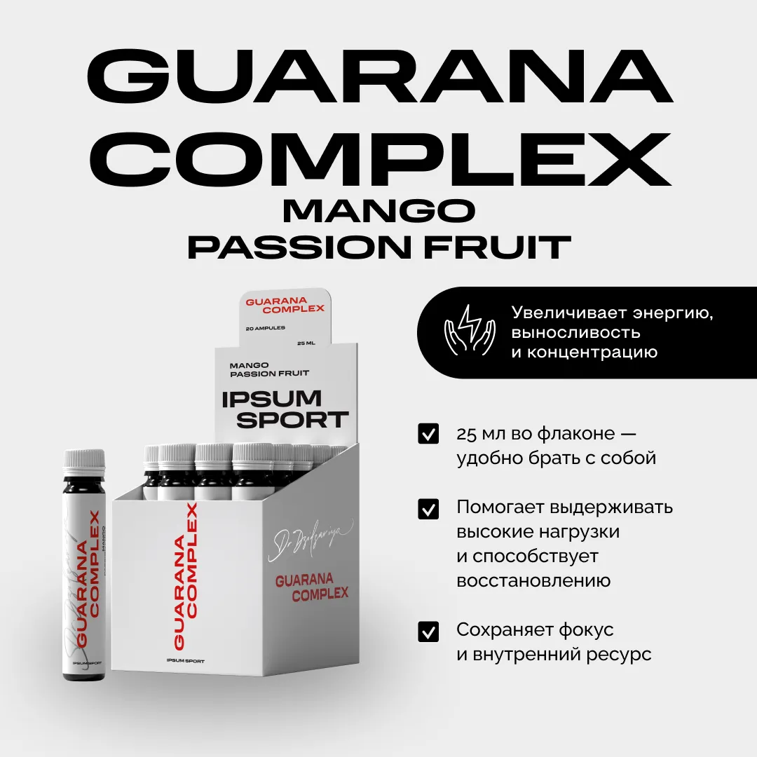 Когда темп жизни не прощает слабости, нужен не просто кофеин, а умная энергия, которая поддерживает и тело, и мозг. Guarana Complex IPSUM создан, чтобы помочь поднять уровень вашей продуктивности без резких скачков и откатов, помогать выдерживать высокие нагрузки и восстанавливаться быстрее, сохраняя фокус и внутренний ресурс.