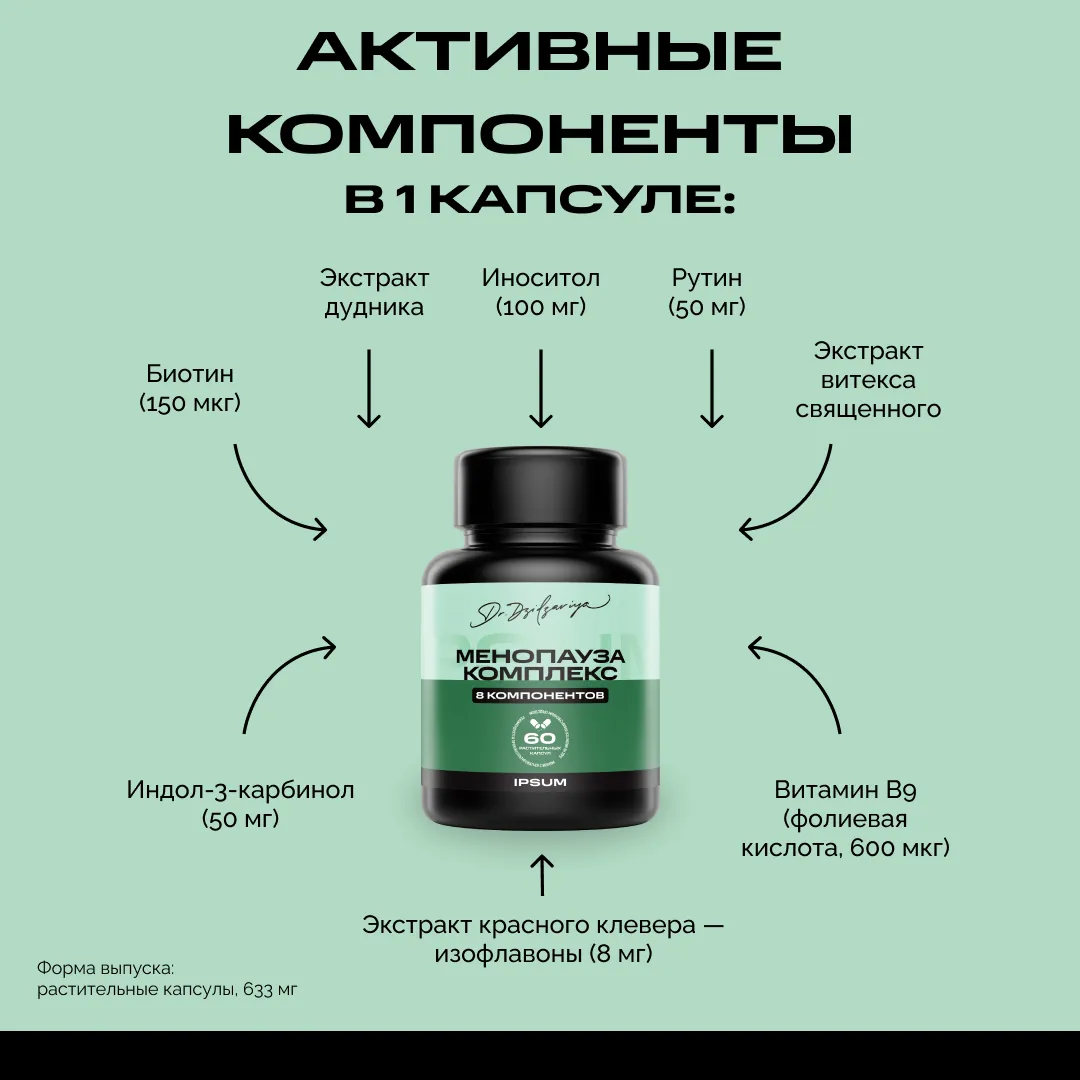 Менопауза — это не пауза в жизни, а новый её ритм. Организм перестраивается, и важно дать ему поддержку, которая поможет пройти этот этап мягко, без лишнего стресса и дискомфорта. Этот комплекс создан для женщин, которые хотят сохранить энергию, настроение и уверенность в себе в любой возрастной фазе.