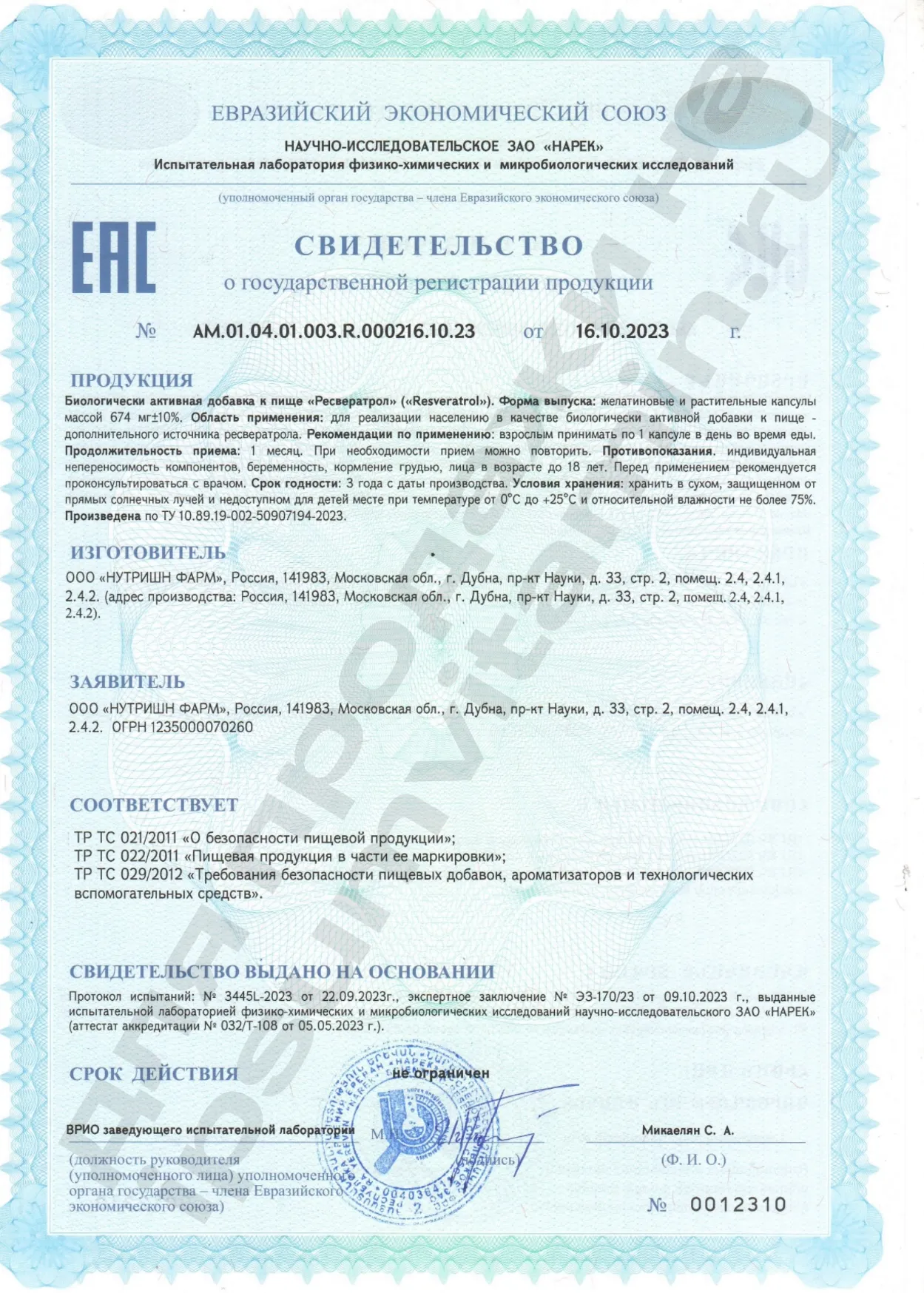 Концентрированная форма природного полифенола, который запускает механизмы восстановления и долголетия на клеточном уровне. Его часто называют «молекулой молодости» за универсальное воздействие на клетки и ткани организма.