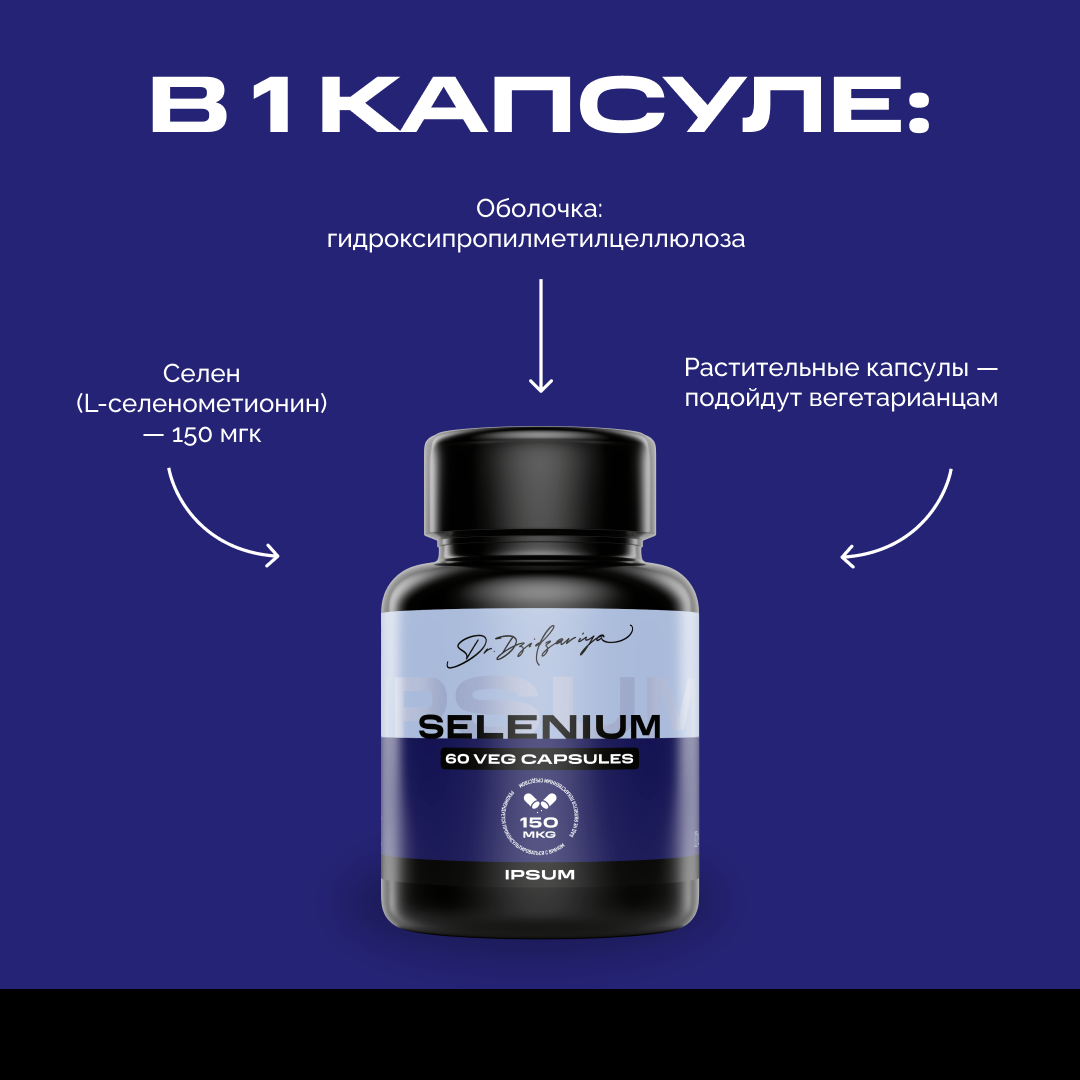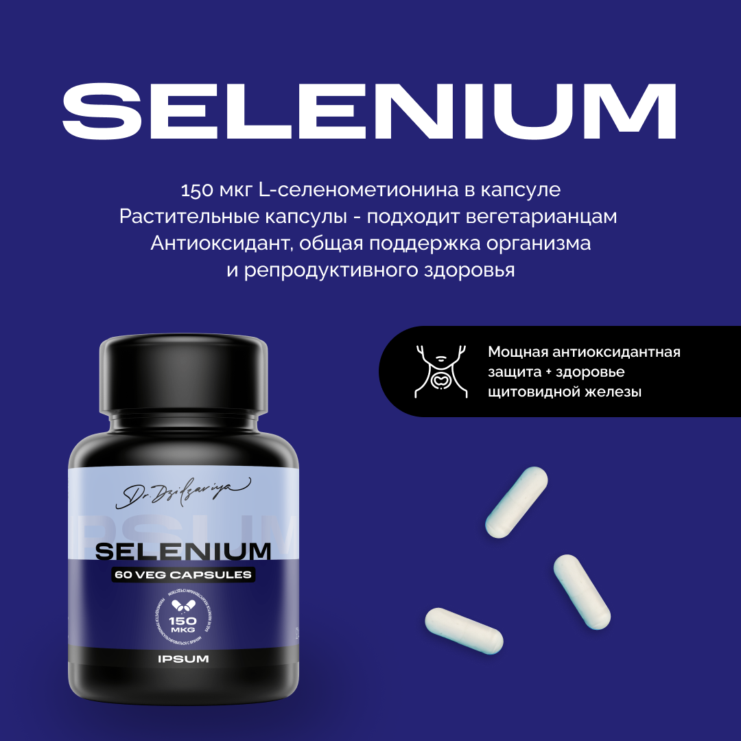 Мощный антиоксидантный компонент и микроэлемент с поддержкой обменных процессов. Селен участвует в нормализации функций иммунной системы, щитовидной железы и репродуктивного здоровья. В форме L-селенометионина он легко усваивается организмом и надолго сохраняется в тканях, способствуя общей поддержке организма.