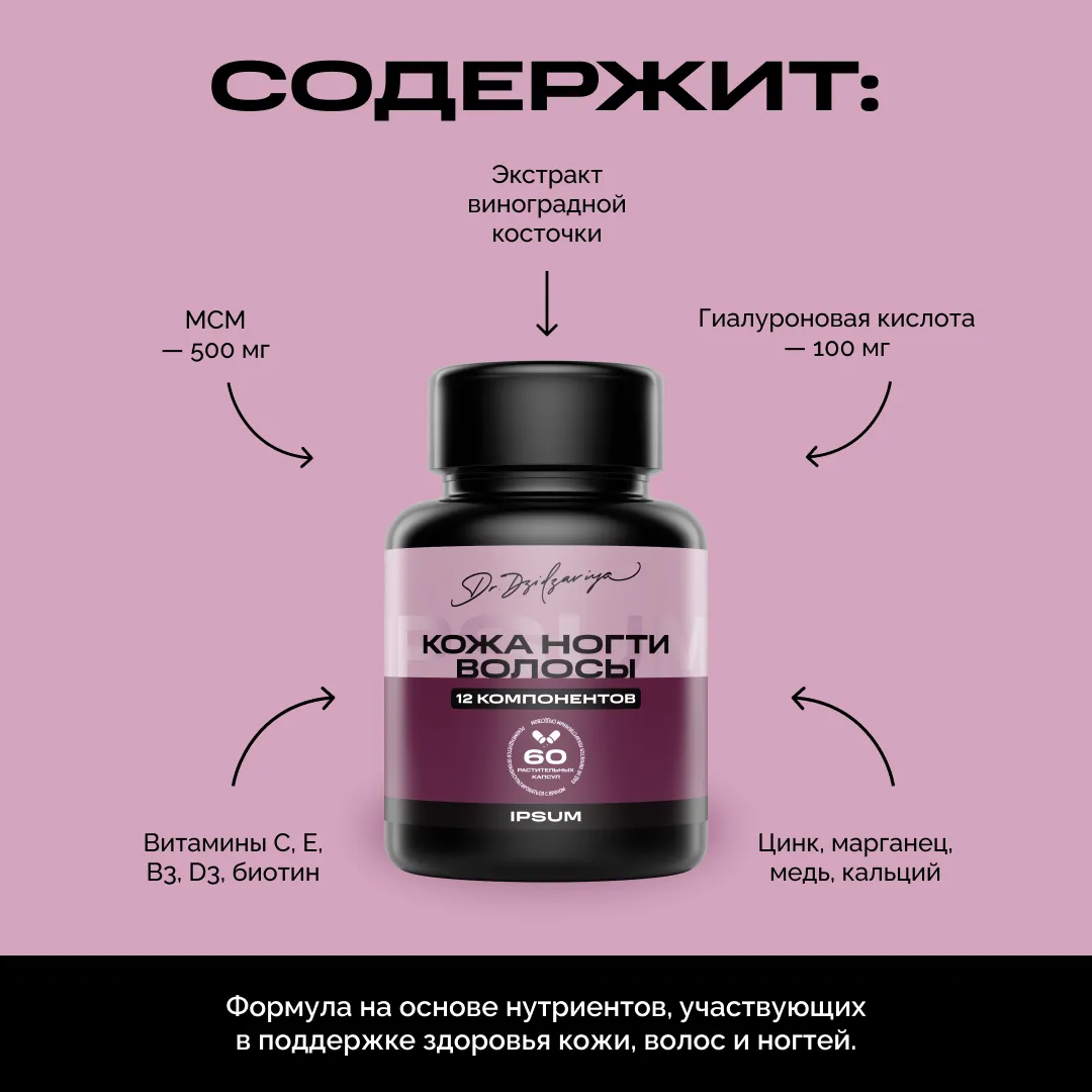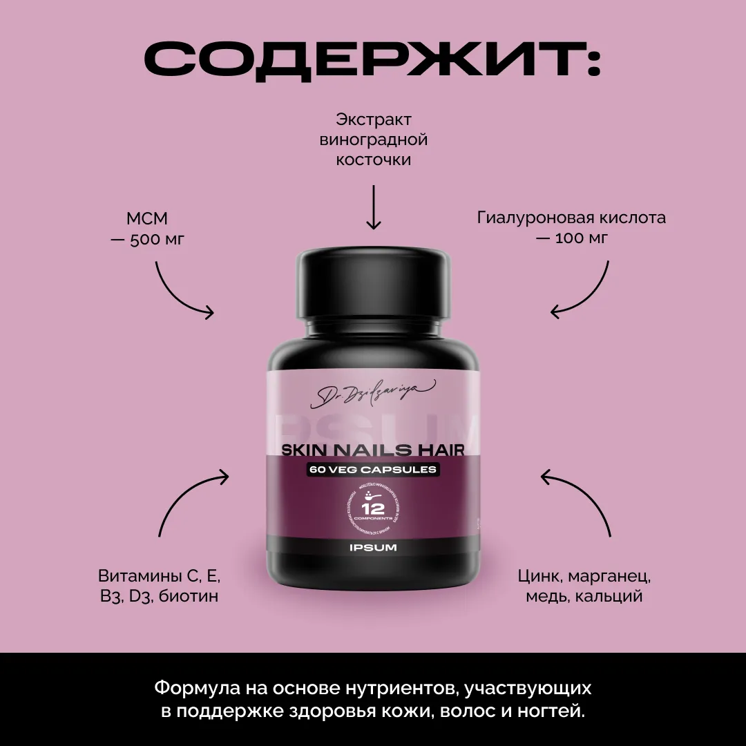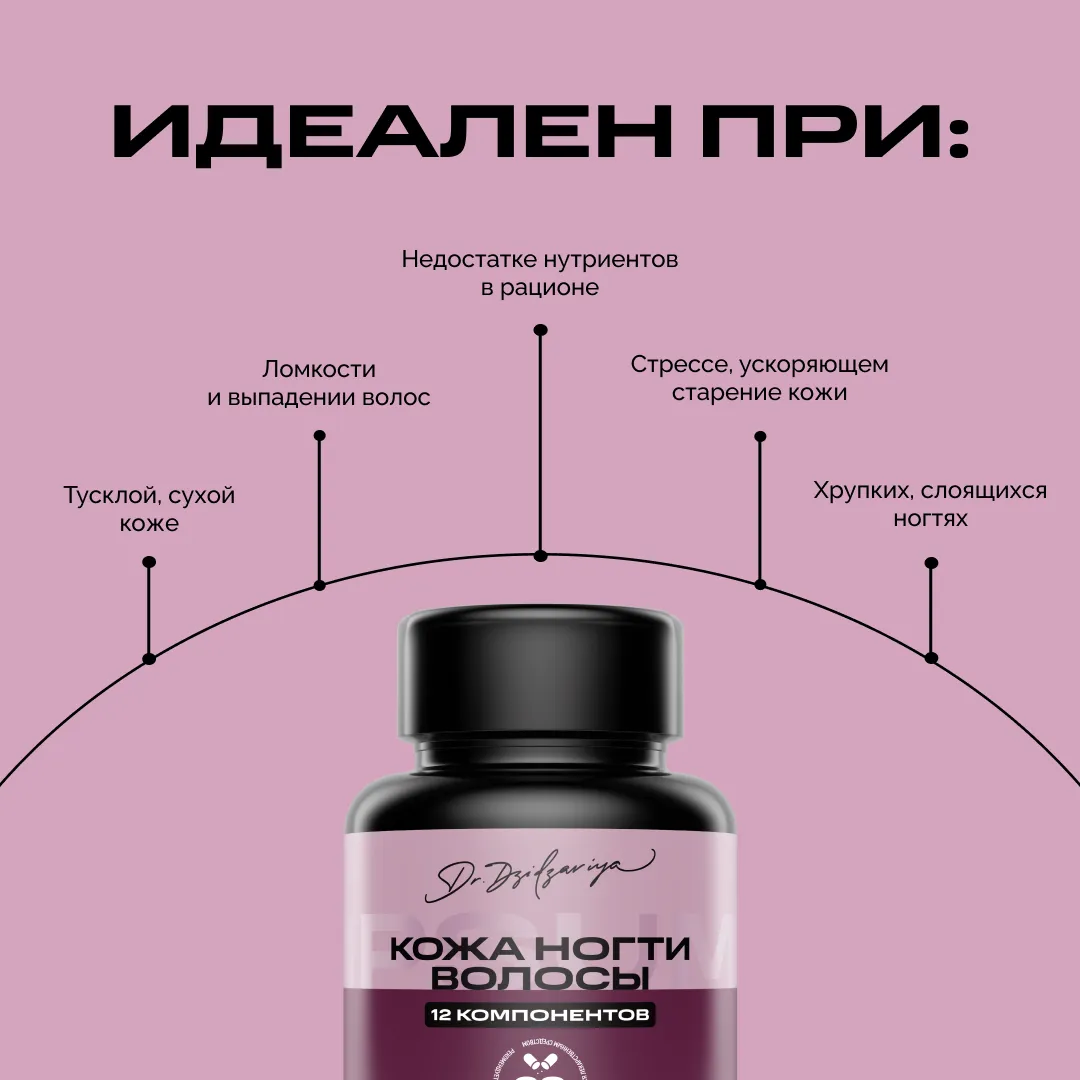 Красота начинается изнутри — именно там создаётся сияющая кожа, гладкие ногти и волосы, которые хочется трогать снова и снова. Этот комплекс собран так, чтобы дать вашему телу то, что не заменит ни один крем или салонная процедура: нутриенты, которые положительно запускают природные механизмы красоты и молодости.