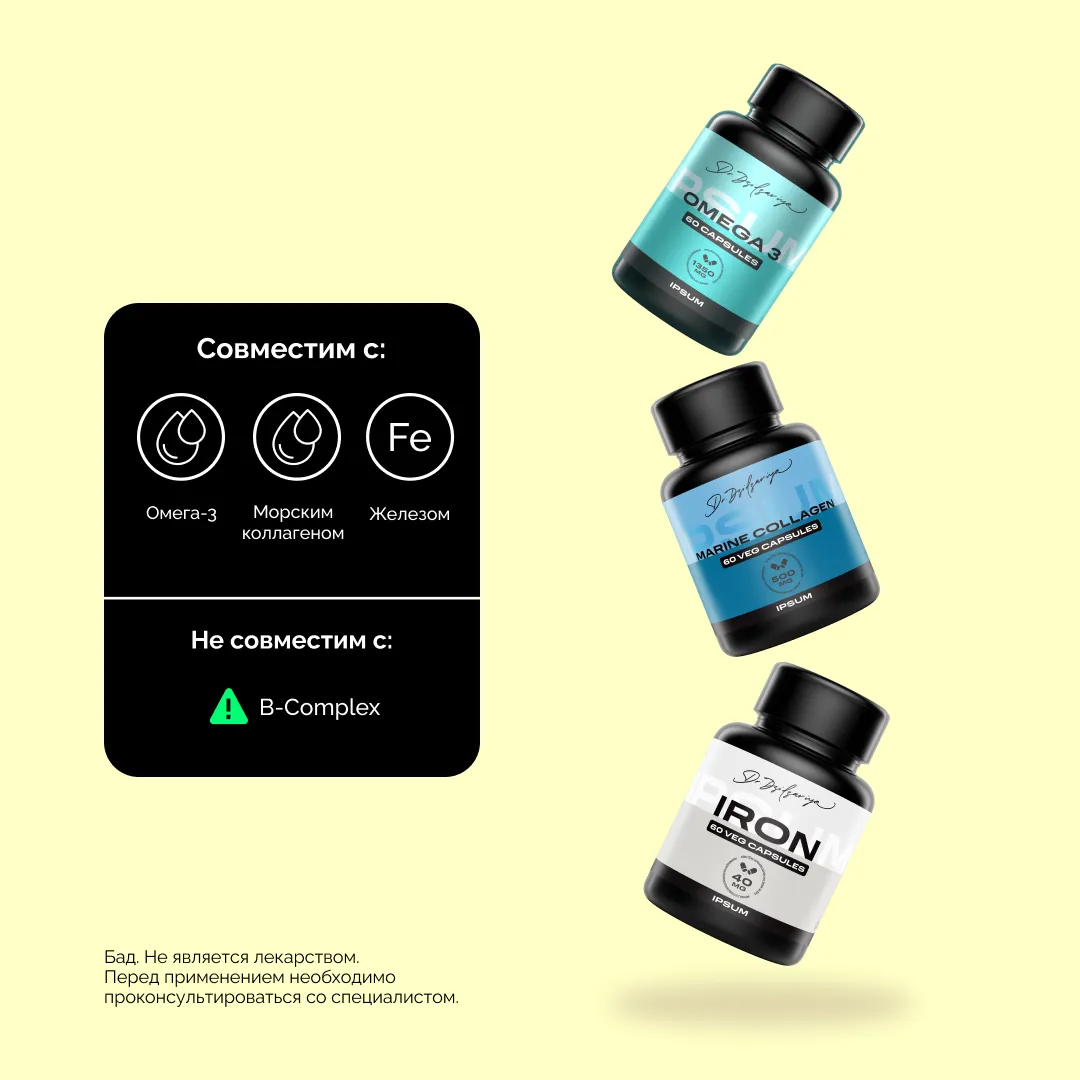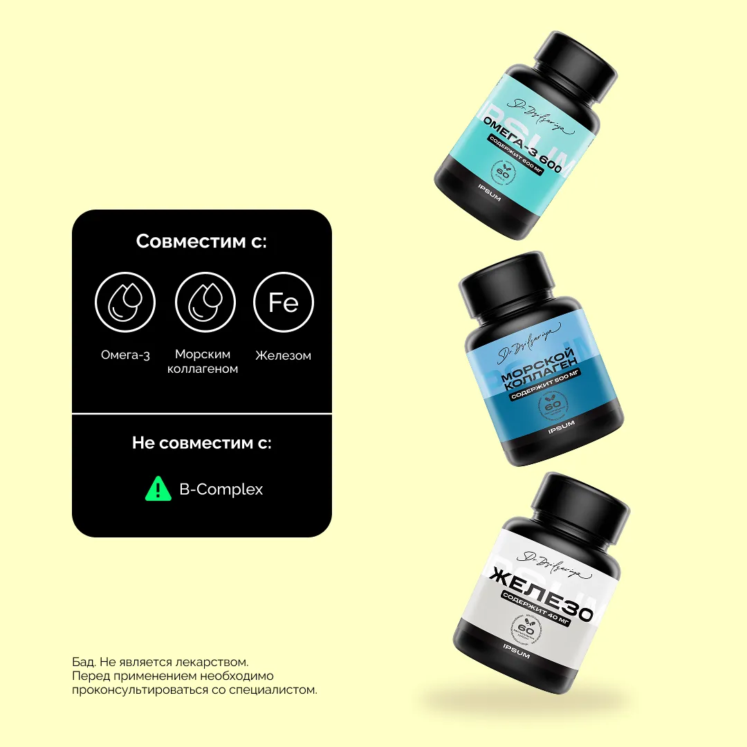 Сочетать с коллагеном — витамин С необходим для синтеза коллагена, поэтому их совместный приём усиливает эффект для кожи, суставов и сосудов.
