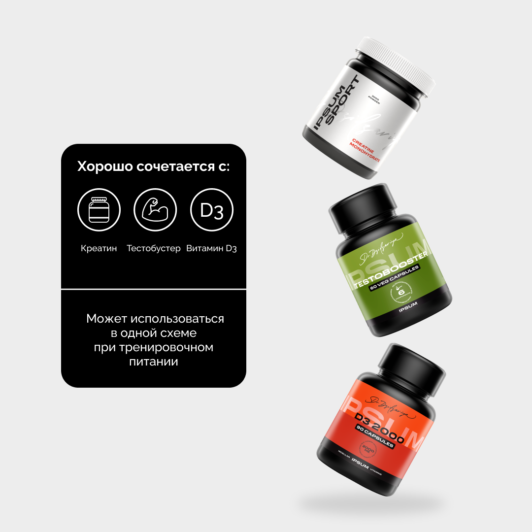 Совместный приём с омега-3 и магнием помогает улучшить восстановление мышц и работу нервной системы.