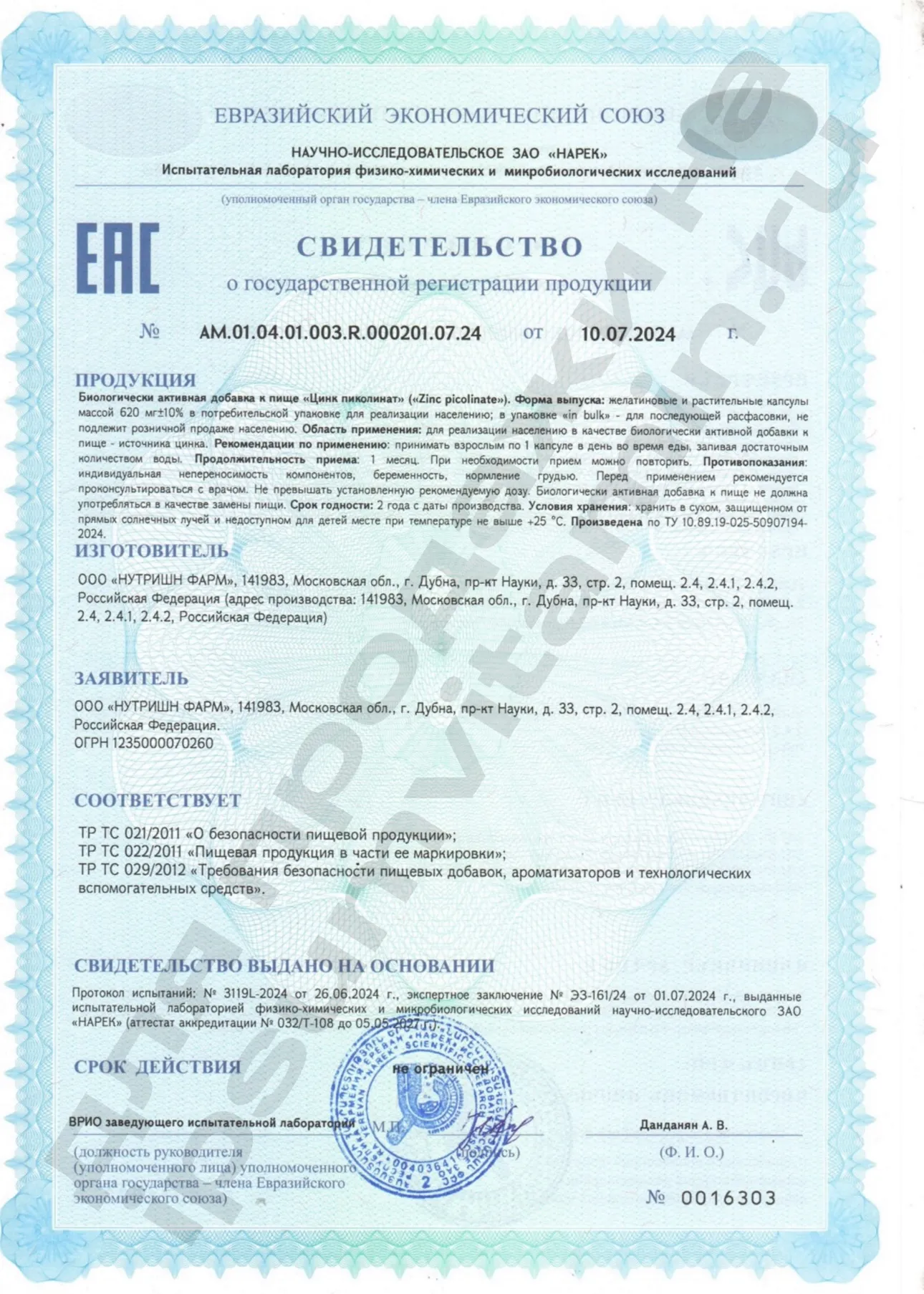 Форма пиколината усваивается лучше, чем обычные соли цинка, что гарантирует максимальный эффект от каждой капсулы.