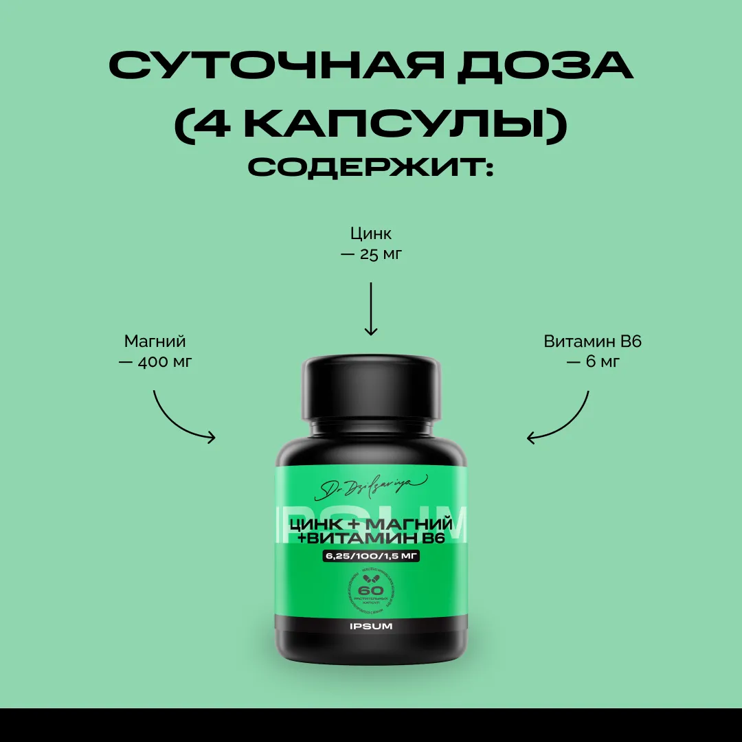 Цитрат магния, капсула растительная (гидроксипропилметилцеллюлоза), Цинка цитрат, Магниевые соли стеариновой кислоты, Кремния диоксид, Пиридоксина гидрохлорид.